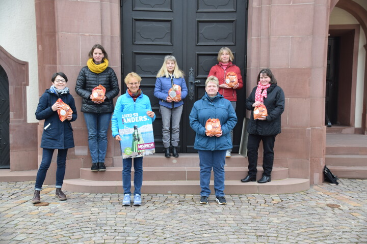 Auf dem Foto zu sehen sind (von links): Heidi Vogel (Pfarrgemeinderatsvorsitzende Urspringen), Sandra Laudenbacher (Pfarrgemeinderatsvorsitzende Karbach), Pastoralreferentin Christiane Hetterich, Magdalena Herteux (Pfarrgemeinderat Roden), Manuela Hofmann von der gleichnamigen Bäckerei in Birkenfeld, Maria Götz (Frauenkreis Birkenfeld) und Karin Renk (Pfarrgemeinderatsvorsitzende Birkenfeld).